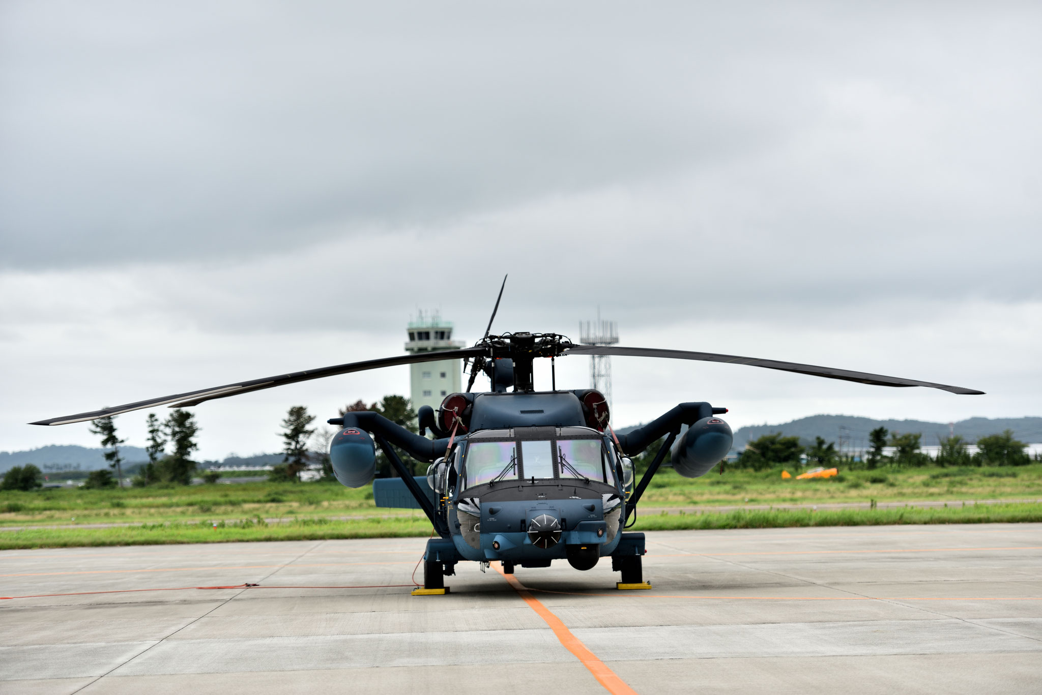 UH-60Jは、アメリカのシコルスキー社が開発した多用途ヘリコプター「UH-60 ブラックホーク」をベースに、日本の航空自衛隊向けに改良された救難専用機です。三菱重工業がライセンス生産を行い、1988年度から調達が始まりました。最大の特徴は、広範囲な救難活動を可能にする長い航続距離と、過酷な気象条件下でも任務を遂行できる高度な装備です。機首には赤外線映像装置(FLIR)や気象レーダーを搭載し、機体側面には捜索用のバブルウィンドウを備えるなど、遭難者の早期発見と迅速な救助を支える設計が施されています。